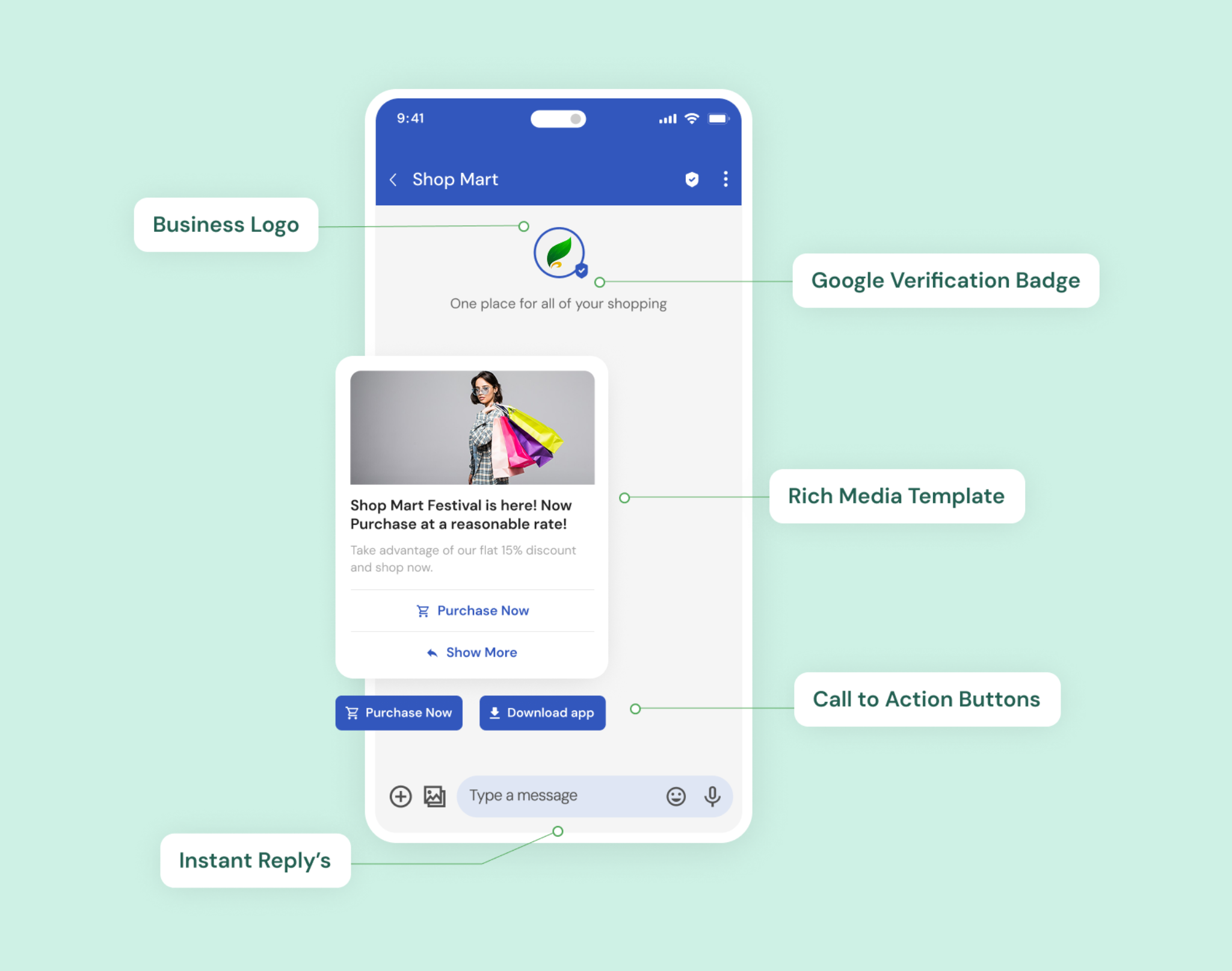 • Verified sender IDs with brand logo & colors